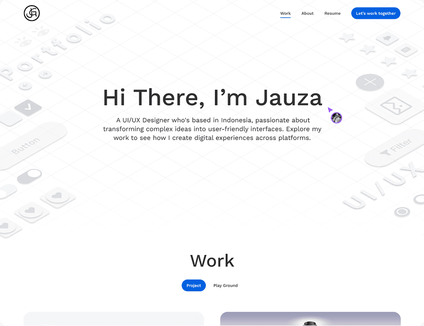 Personal portfolio for a creative UI/UX designer showcasing design process, selected works, and creative direction.