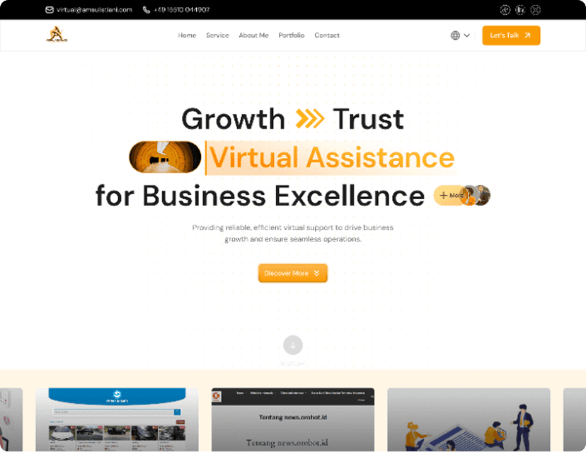 Portfolio site for a professional Virtual Assistant highlighting services, experience, and remote support.